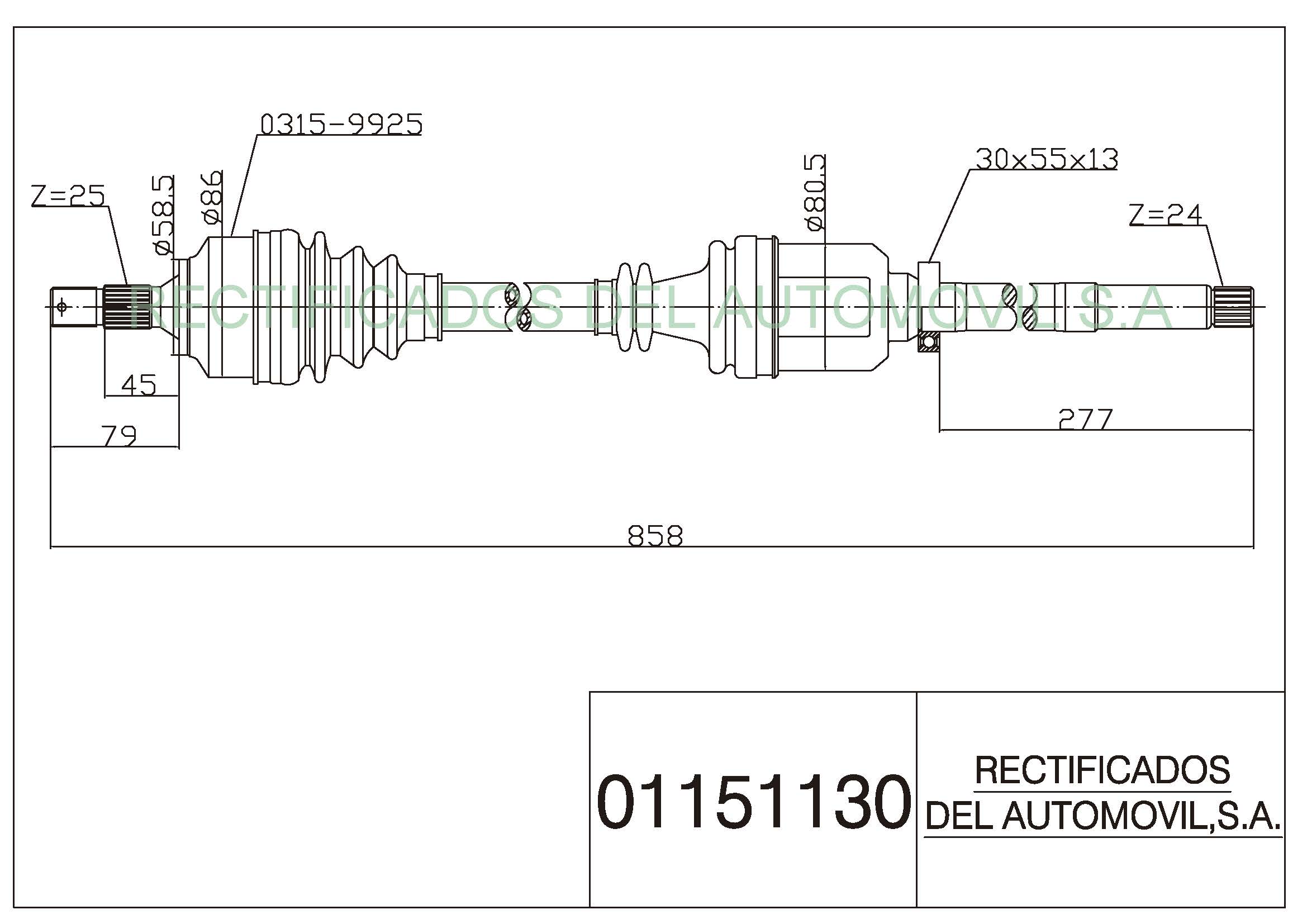 Notasabs:no A:25 D:24 L:858 Pieza larga con soporte/rodamiento
